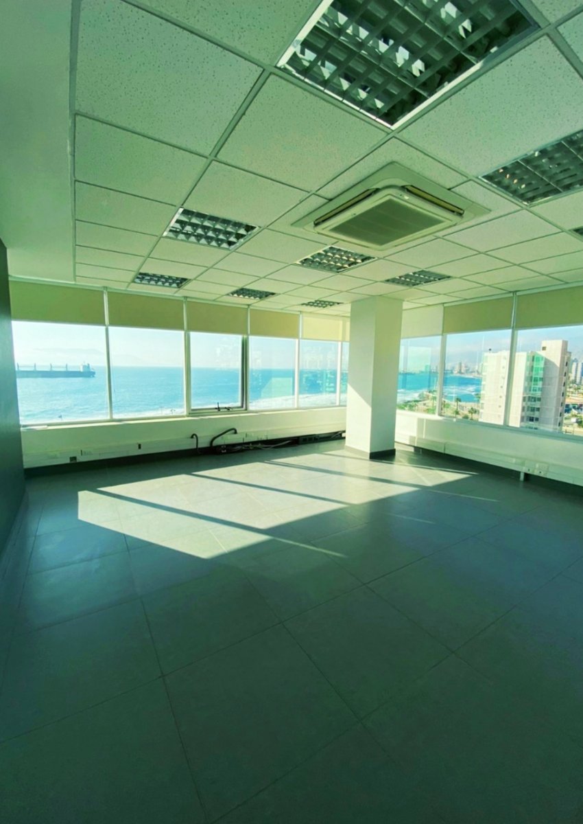 Gran oficina planta libre con vista al mar ubicada en José Toribio Medina, sector sur de la ciudad de Antofagasta. Edificio de oficinas con terraza vista panorámica, conserjería y seguridad las 24 horas, con ruta al Barrio Industrial La Negra, Minera Escondida
