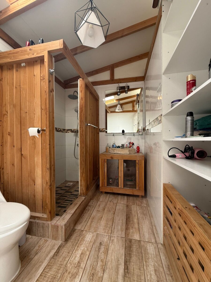 - 3 baños completos (uno con shower door y otro con diseño moderno en madera)